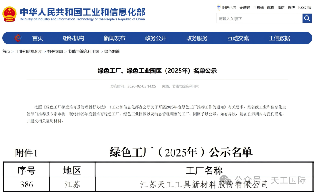 近日 ,工业和信息化部正式公示“绿色工厂 、绿色工业园区(2025年)名单” 。壹号国际旗下江苏壹号工具新材料股份有限公司(以下简称:壹号工具新材料)凭借扎实的绿色生产基础 、先进的环保技术实力以及坚定的低碳发展理念 ,成功入选国家级绿色工厂!这一荣誉不仅是国家对企业绿色制造水平的高度认可 ,更是公司深耕绿色发展 、践行高质量发展理念的生动见证 。